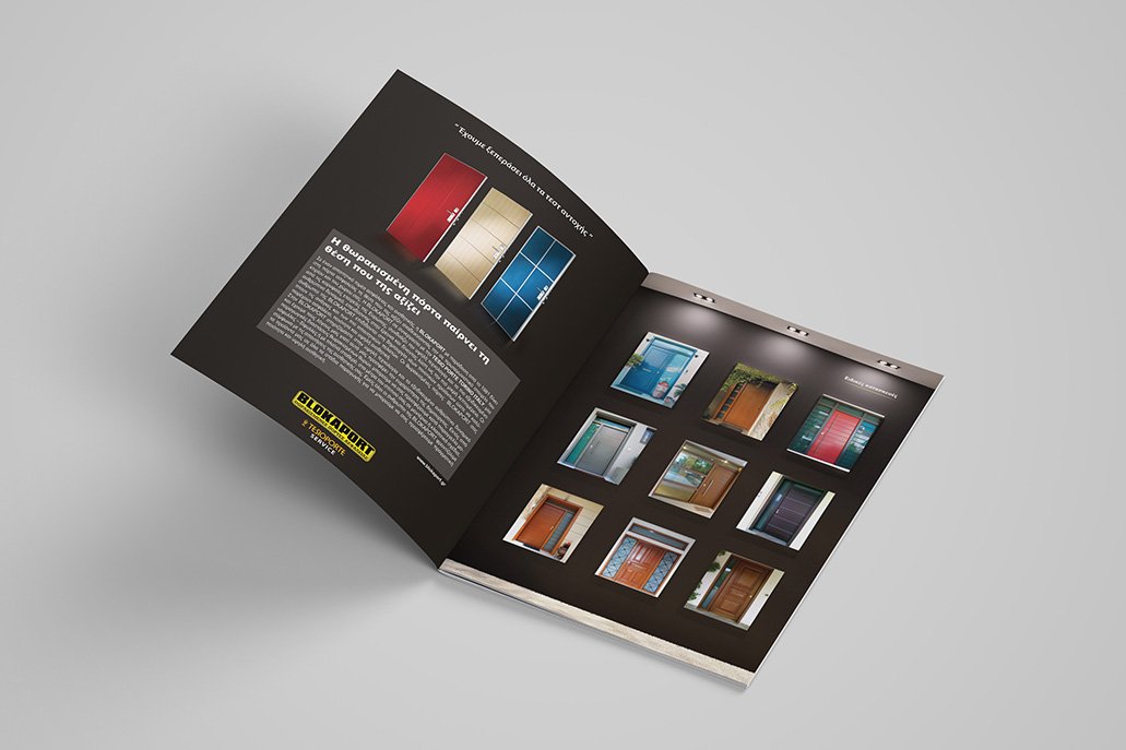 Catalogue layout design for a security doors company. The processing of the photos was a challenge as the provided matterial was of extremely low resolution and quality which made the retusche almost an impossible task in order to be printed in high quality. The results were above the expectations of the client.