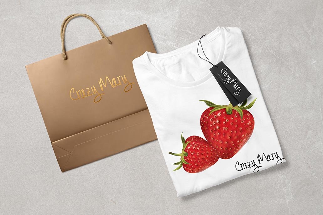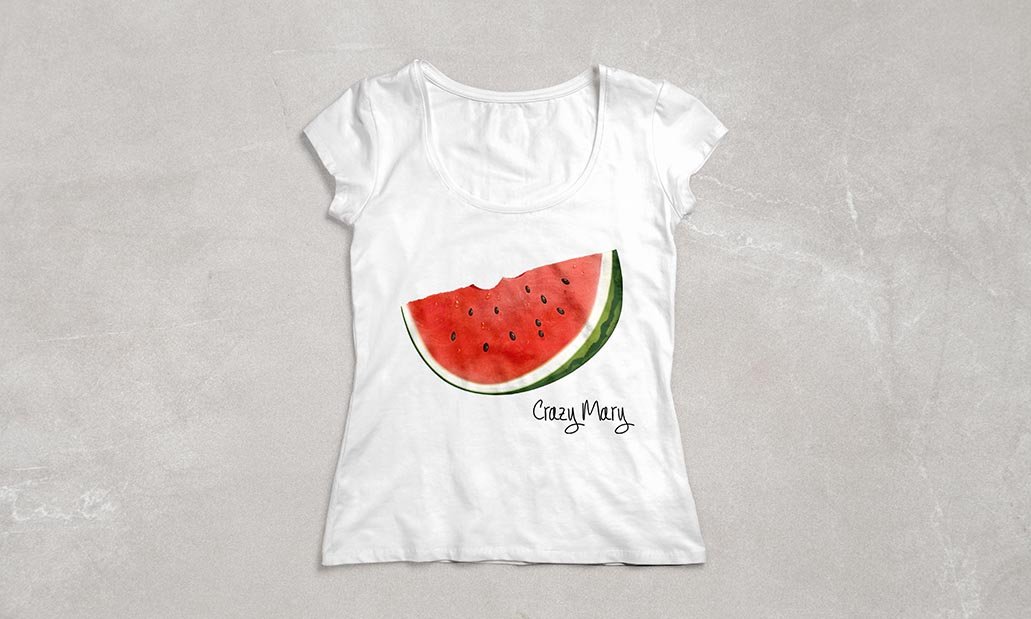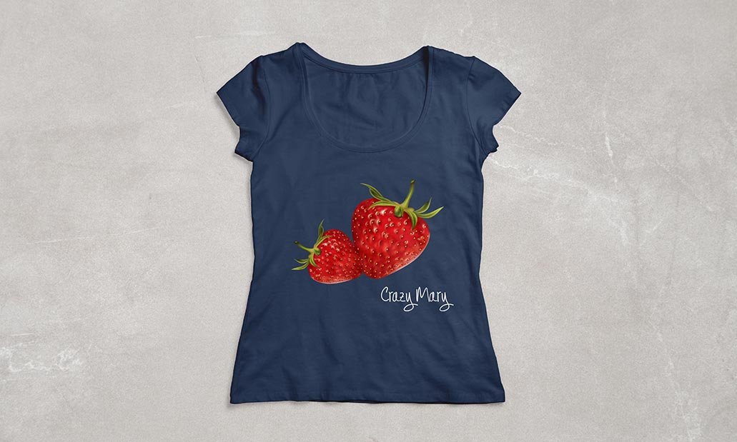 Branding and realistic illustration for women T-shirts. The aim of this project was to study a possible relationship of realistic illustration and fresh juicy fruits for the summer collection. The inspiration comes from a research in relevant photos that step by step created the basis for the fruits using adobe photoshop and illustrator.