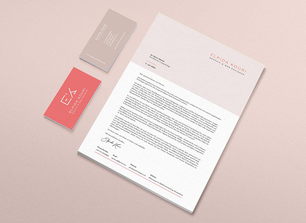 EK was created for my brand identity. The goal was to make a logo with individual minimalist characteristics that distinguish from the ordinary Typefaces. During this process I created my own Typeface to fit my CI implementation.