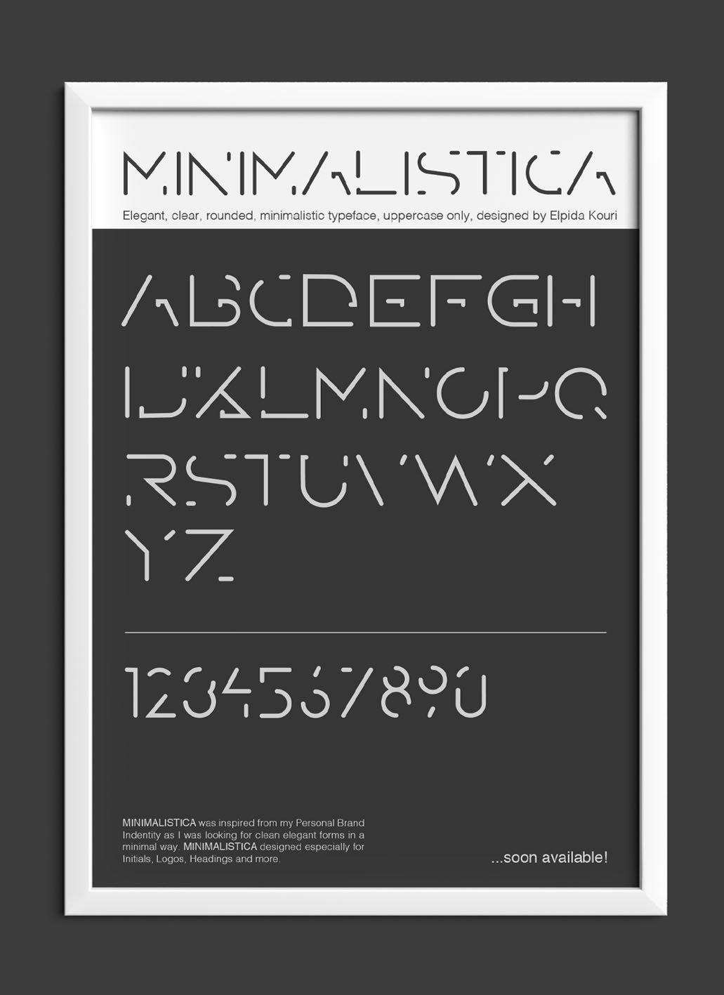 Minimalistica was inspired from my personal brand identity as I was looking for clean elegant forms in a minimal way. This Typeface designed especially for initials, logos, headings and more.