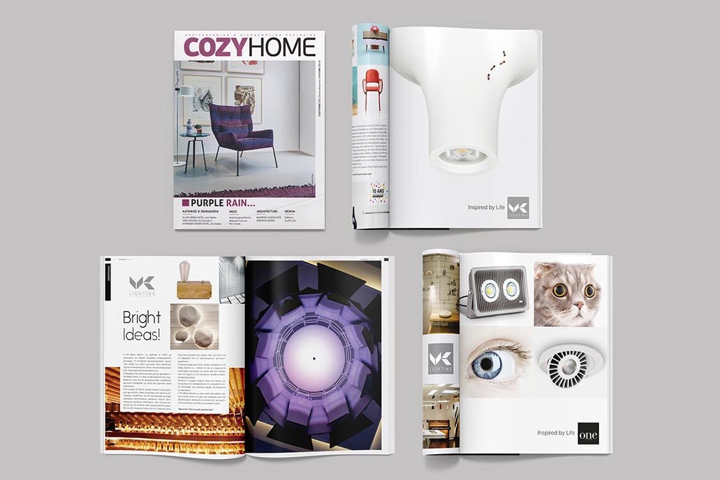 The visual language assigned to this brand, through the process of rebranding, is based on elements of refracting light and Purple colour which is a characteristic of led lighting that saves energy for 50.000 hours and has good indoor applications. The campaign “Inspired by Life” for the series of the year 2014, is resembling company’s products as part of nature life under a minimal design.